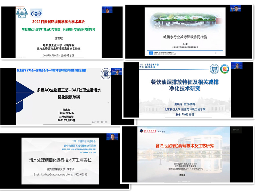 2021年甘肃省学术年会以“碳中和愿景下减污降碳协同治理”为主题,于9月15日以“线上+线下”相结合的模式在甘肃省兰州市举办,本次年会活动分为主会场和四个分会场,各界参会代表以不同方式参加本次年会。由兰州交通大学与兰州理工大学共同承办了第四分论坛,分论坛以“市政减污降碳协同措施与智慧监管”为主题,共邀请6位专家学者做学术报告。分论坛由我院副院长宋小三和兰州理工大学给排水科学与工程系主任王亚军主持,我院师生共30余人参加了现场会议。