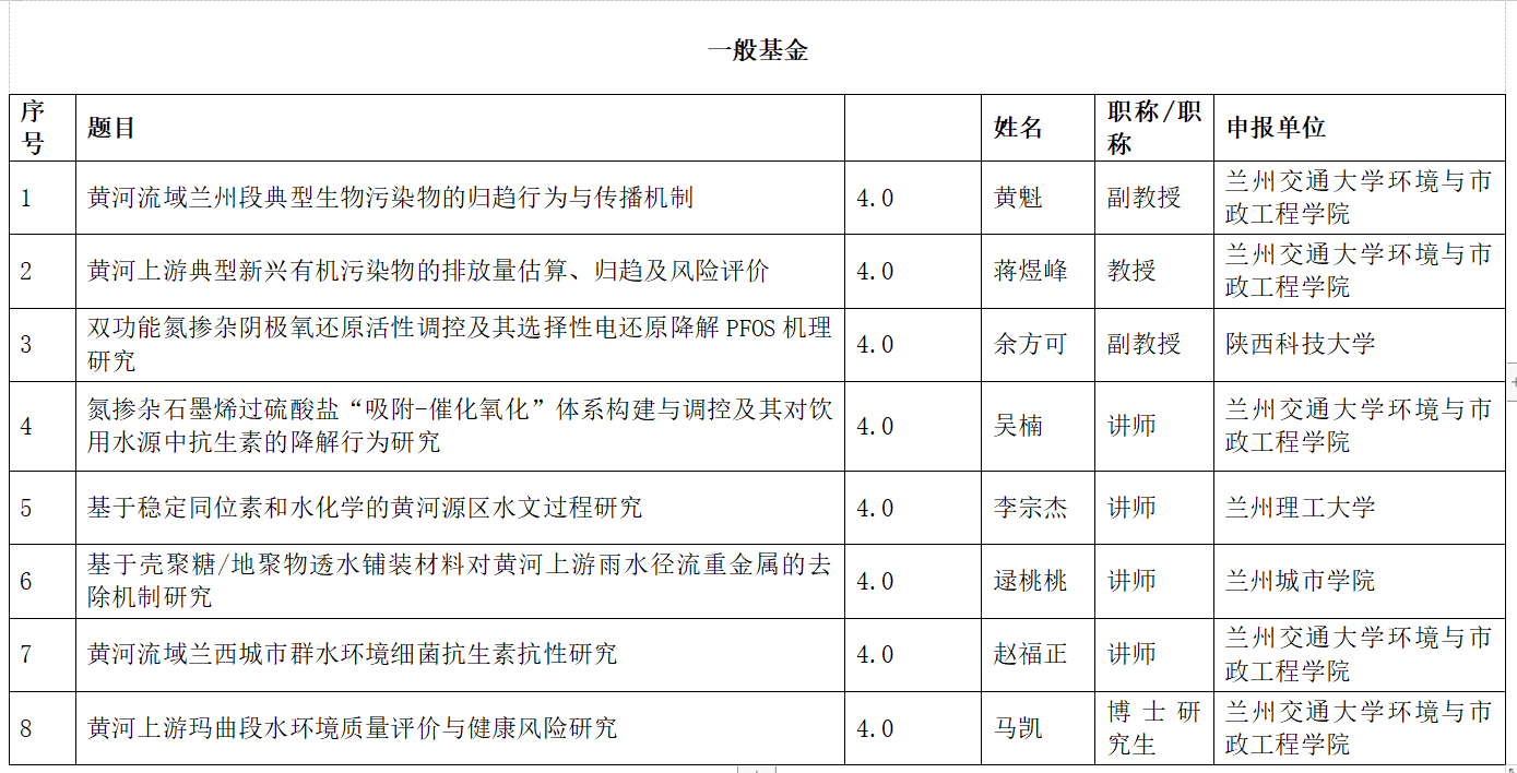 关于公布甘肃省黄河水环境重点实验室2021年度开放课题评审立项的通知