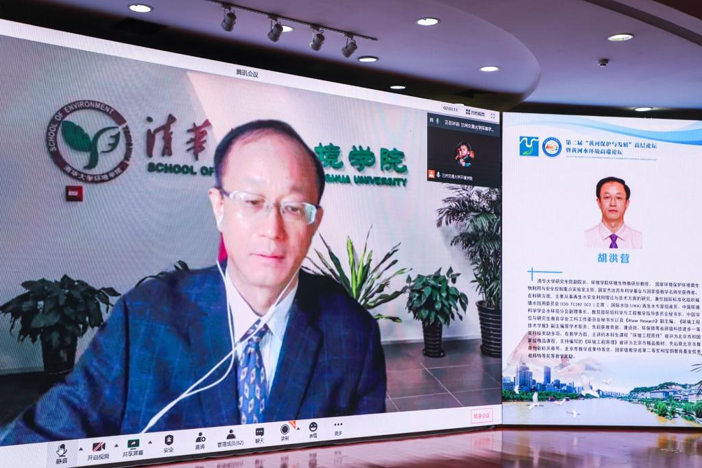 本次论坛邀请到中国工程院王浩院士、国家杰出青年科学基金与国家级教学名师奖获得者胡洪营教授、甘肃省人大常委会副主任陈克恭研究员、甘肃省教育厅副厅长张国珍教授、清华大学王忠静教授、郑州大学左其亭教授、哈尔滨工业大学陈志强教授等15位来自各个高校的专家学者作学术报告。会议采用线上线下相结合的方式,来自全国近30余所高校和科研机构200余人现场参会,5000余人通过直播平台和腾讯会议线上参会。